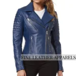 Women’s Blue Quilted Leather Jacket